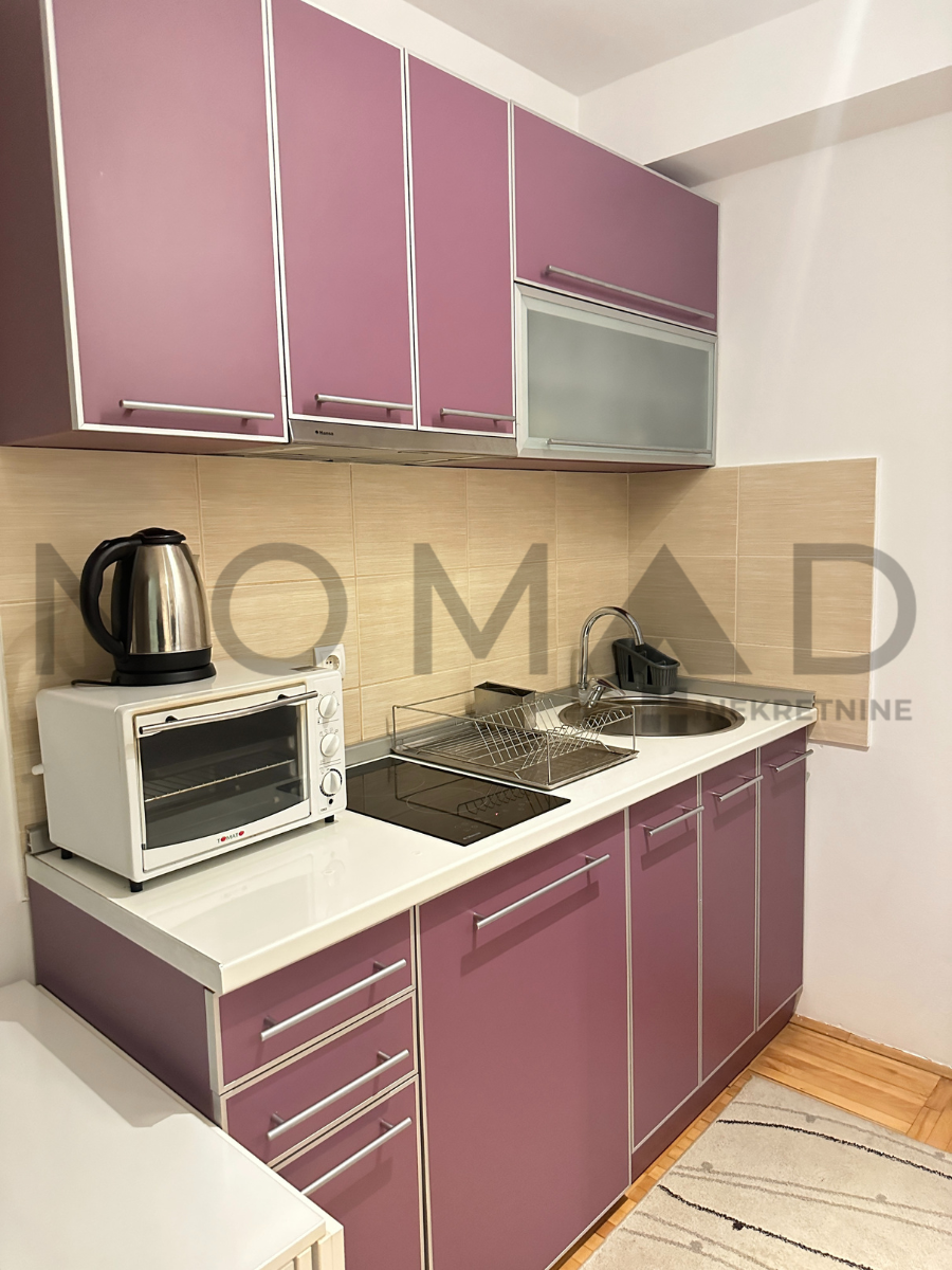 Na prodaju namešten studio apartman u Kraljevim Čardacima, površine je 24m2 , koji se sastoji od hodnika, sobe sa kuhinjom i trpezarijom i kupatilom. Apartman se prodaje namešten.
